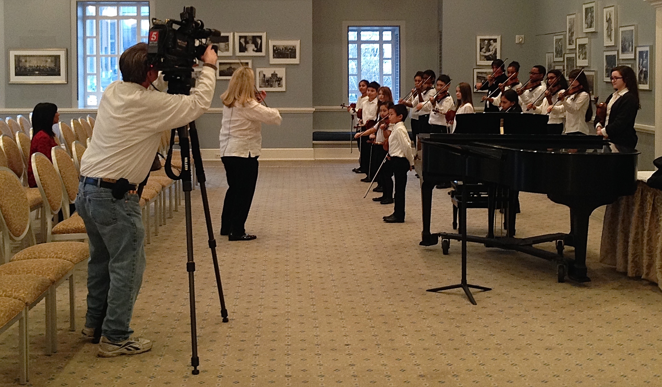 NewsChannel 5’s Charlie Woodward films students in the Nashville Symphony Suzuki Program as they warm up for a performance with the orchestra, March 4, 2015