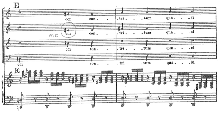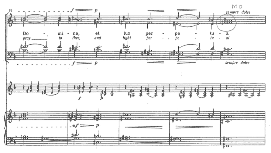 It’s a pretty rare syllable to have to use – the only other time we encountered it was two years later when we were learning the Fauré Requiem.  Fauré writes an A# for the sopranos in bar 80 of the Libera Me: again a raised fifth scale degree, this time in D minor.