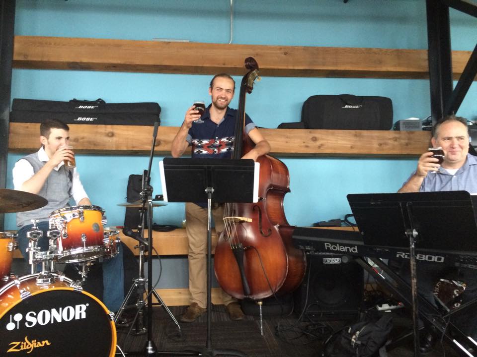 My son Holden, who is a classical cellist, also played (both upright and electric) bass in the amazing Silver Jazz Band at Hume-Fogg High School here in Nashville under one of the finest music educators I have ever met, Dr. Richard Ripani. Rich’s band and jazz programs are justly famous not only in Nashville but throughout Tennessee, and the Silver Jazz Band competes regularly at a national level. When Holden went off to college he missed playing jazz, so he found an old upright on Craig’s List, and a couple of years ago we began reading through Real Book charts when he was home from school. This fall we found Andrew McVey – a terrific drummer – who joined our trio, and we began to rehearse regularly and play in public. The rest is, well it’s not history – let’s say it’s the future.