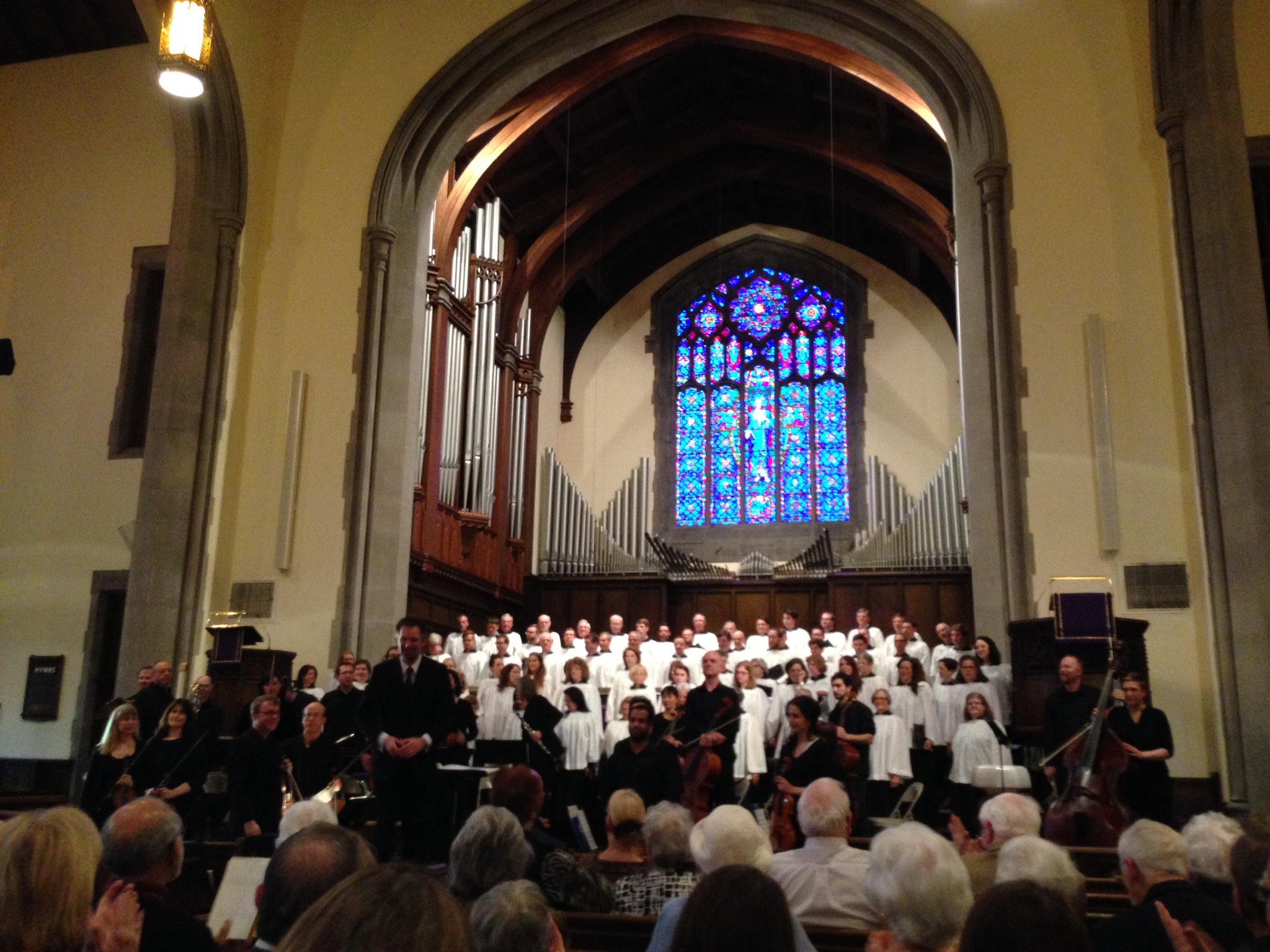 So I was unprepared for the emotional potency of the work. This winter, my daughter began singing in the Sanctuary Choir, which Andrew also directs – Matthew directs the Chancel Choir and directed the combined performance of the Lauridsen. Watching her face as she sang the opening chorus with the combined choirs of more than 90 singers, with a fine orchestra, in the beautiful sanctuary of West End UMC late on a Sunday afternoon, after a very tiring and intense weekend running a concerto competition, was a touching and almost overwhelming experience for me personally.