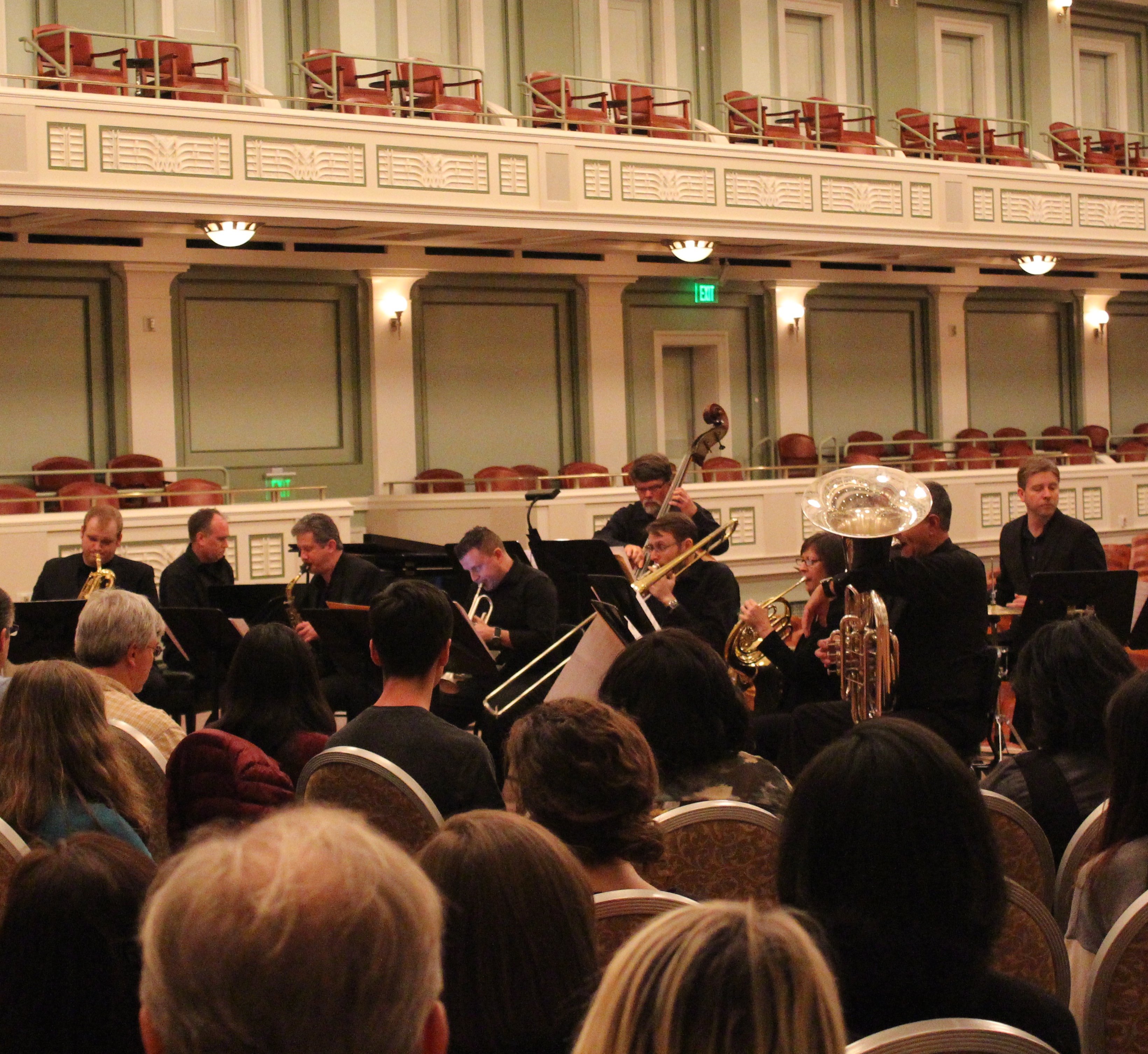 Ryan liked my idea for the program, and last November we met with Nashville Symphony Principal Tuba Gil Long – who also teaches at Blair – who agreed to help us put together the ensemble. In the end Gil and Ryan recruited an amazing nonet: