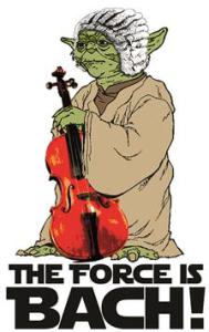 As in past years, admission is free. Those who attend are welcome to come for the entire event, or to come and go as they wish, and delicious homemade food will be available for minimal cost. These refreshments in past years have been available in the church’s parish hall, where the concert is piped in so that patrons can grab a bite to eat without missing any of the music: I am guessing that this format will continue again this year. As has become traditional, BACHanalia 2016 t-shirts will be available for sale, featuring this year’s logo: Yoda sporting a powdered wig.
