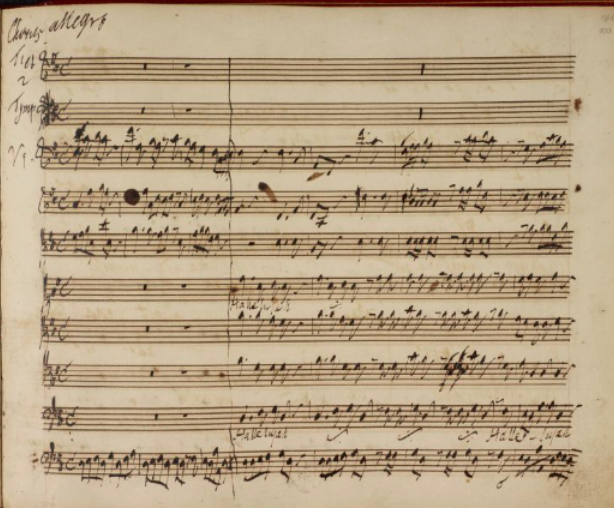 the first page of the Hallelujah Chorus from Händel's working manuscript of Messiah. The entire manuscript may be viewed here online at the British Library.