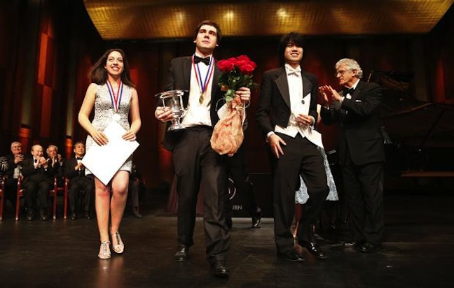 Winners of the 2013 Van Cliburn International Piano Competition (l to r) silver medalist Beatrice Rana, gold medalist Vadym Kholodenko, & crystal award winner Sean Chen ~ photo by Tom Fox