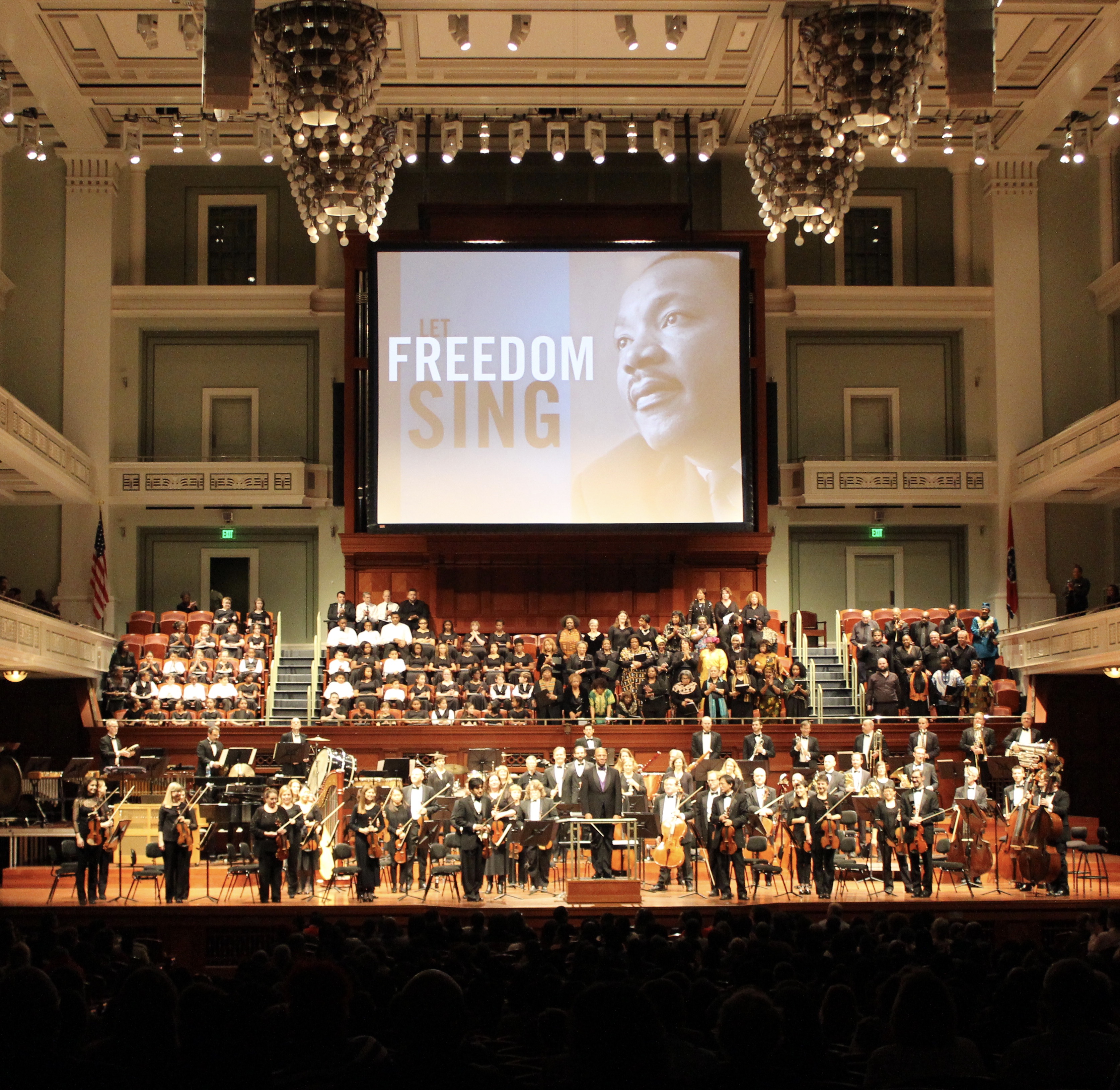 On January 22, the Nashville Symphony presented the 24th annual Let Freedom Sing concert in honor of the life and legacy of Dr. Martin Luther King Jr. This year’s festive musical celebration was conducted by Chelsea Tipton, the music director of the Symphony of Southeast Texas. As in years past, the symphony was joined by the Celebration Chorus and Celebration Youth Chorus, and the 2017 Sphinx Competition winner Annelle Gregory – who Nashville Symphony EDCE staff witnessed win the Sphinx Competition finals a couple weeks later in Detroit – was the featured soloist on Tchaikovsky’s Violin Concerto.