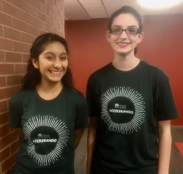 (l to r) Accelerando students Emily Martinez-Perez & Isabel Evernham assist with Accelerando auditions, March 4, 2017