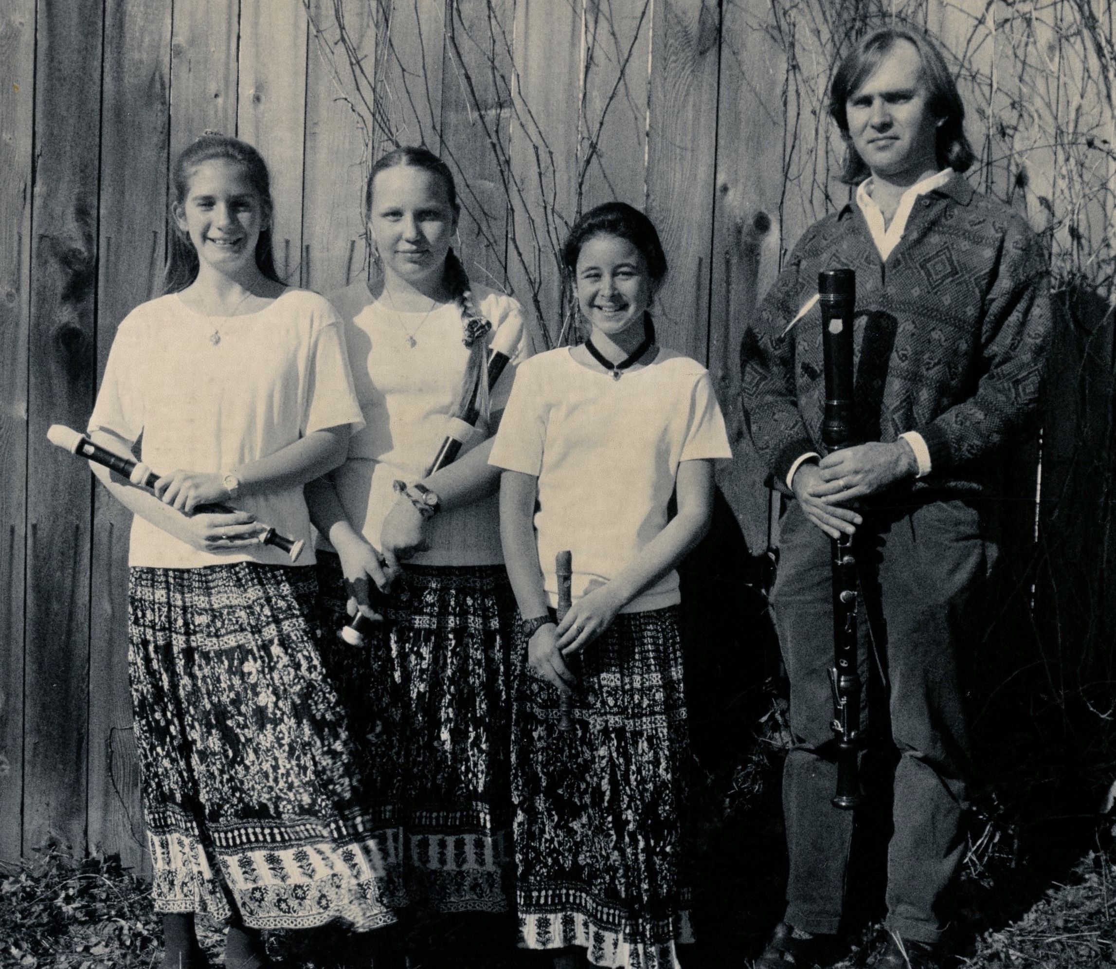 The Lapis Ensemble, circa 1994 (l to r) Anna Grace Schurman, Britta Lindgren, Zaria Forman, WB ~ photo by Rena Bass Forman