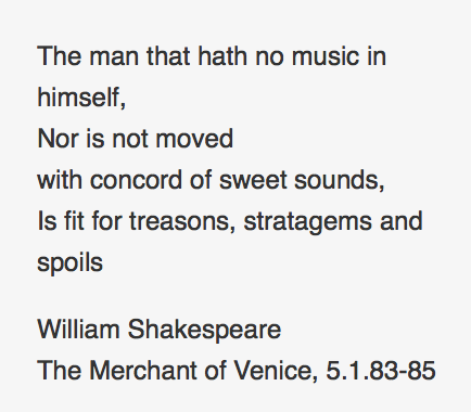 Serenade to Music is a setting of the famous discussion of music in Act V, Scene 1 of William Shakespeare’s The Merchant of Venice. (Not incidentally) this text provided the motto for my website, and has been featured on the Home page of Off The Podium since I began publishing my writing about music and education here in March 2015.