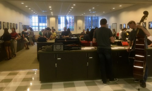 Curb Youth Symphony musicians prepare for rehearsal backstage at Schermerhorn Symphony Center, May 14, 2018