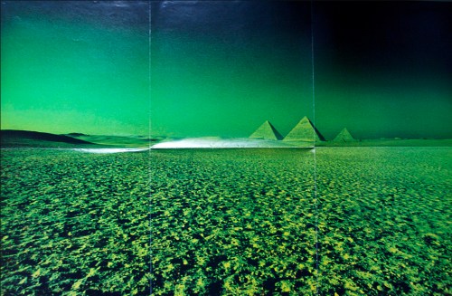 (Top to bottom) The original gatefold album cover; gatefold inside; pyramid posters; PINK FLOYD band posters (click images to enlarge)