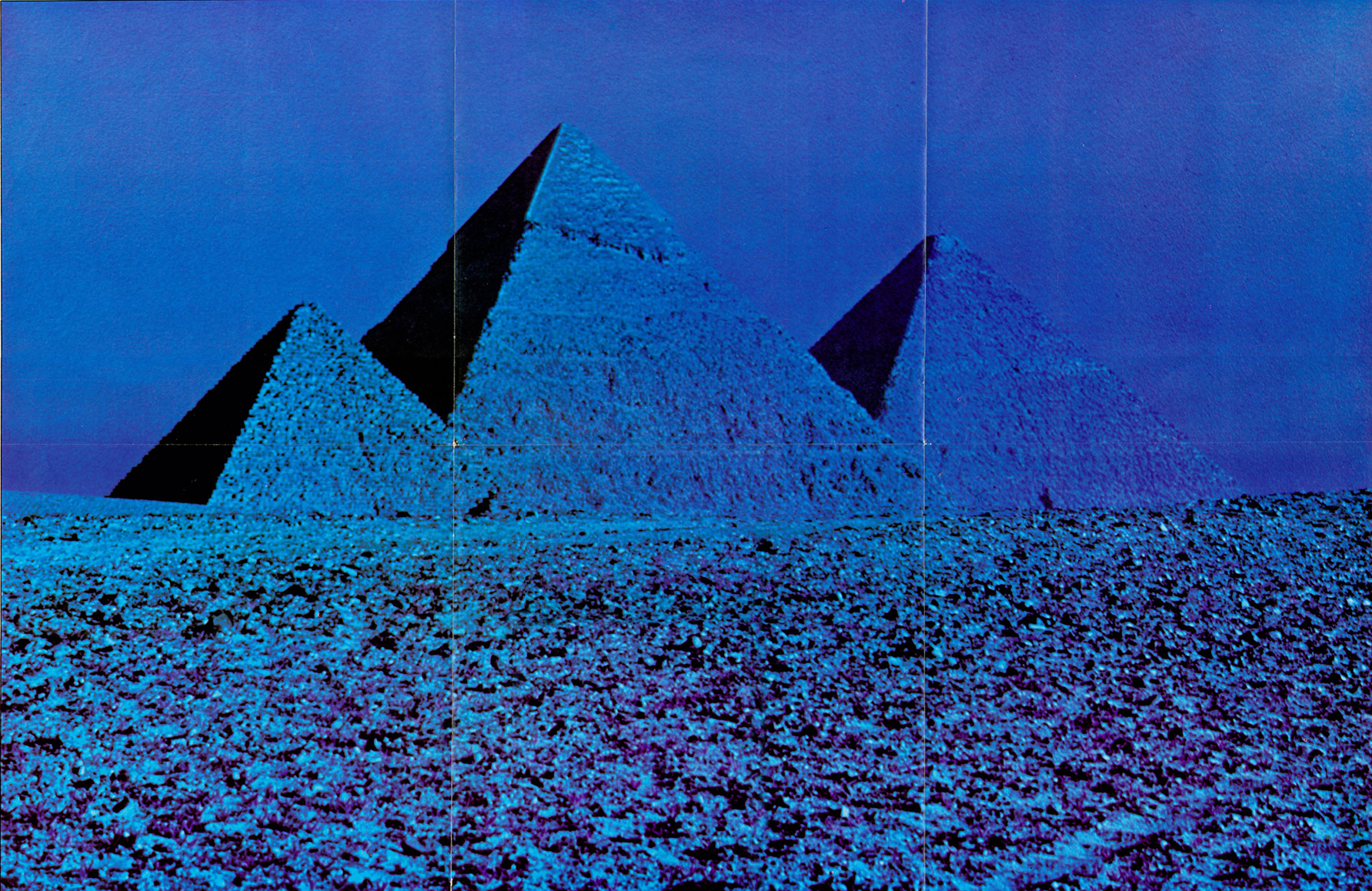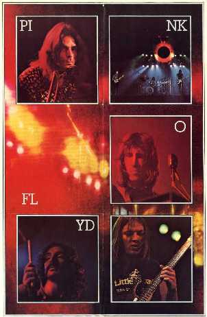 (Top to bottom) The original gatefold album cover; gatefold inside; pyramid posters; PINK FLOYD band posters (click images to enlarge)