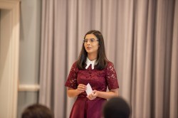 Aalia Hanif, a member of Accelerando’s inaugural class who will also be our first graduate – this year! – addressed her peers as part of the reception’s ceremonies.