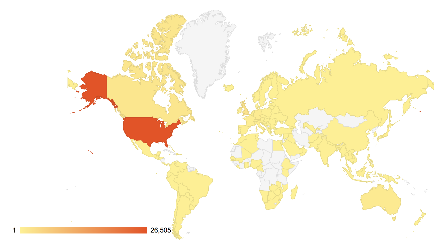 Off the Podium reaches a broad international audience, with visitors from 135 countries worldwide in 2018.