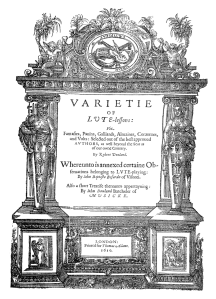 The title page of Varietie of Lute-lessons (1610) by Robert Dowland, available here