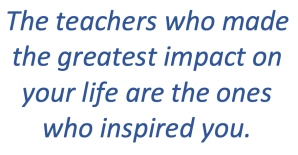 Yet… if you reflect on your own experience, it is likely that the teachers who made the greatest impact on your life are the ones who inspired you. These are the teachers you have the strongest memories of, and it is probably they – at least in part – who inspired you to become a music teacher.