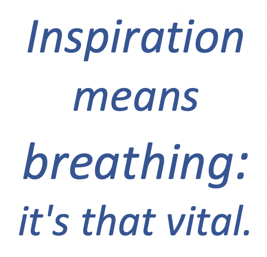 Inspiration literally means “to breathe into” – the word comes to English originally from the Latin word inspirare through the French word inspirer. Inspiration is closely related to the word spirit – also originally from Latin (spiritus). Spiritus = breath, life force. To inspire your students literally means to breathe into them.