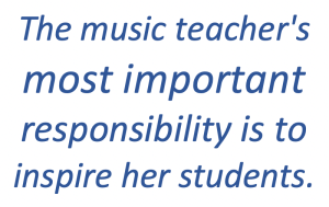 In the contemporary climate of data-driven education, you don’t hear much about inspiration in the popular rhetoric about music education and its role and purpose in the lives of children. But in fact the music teacher’s most important responsibility is to inspire her students.