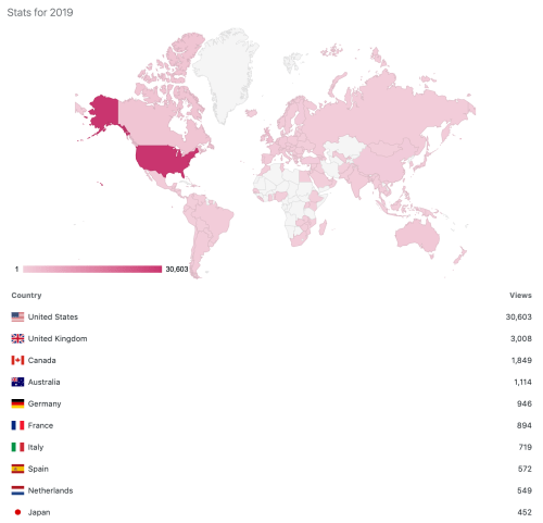 Off the Podium reaches a broad international audience, with visitors from 143 countries worldwide in 2019. 64% of views in 2019 were by readers in the United States, and the four countries with the highest number of views are all primarily English-speaking. More than a third (35%) of Off The Podium’s readers in 2019 reside outside the U.S.