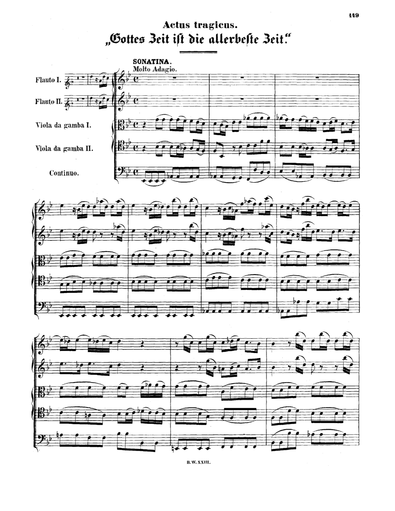 The first page of Actus Tragicus from the Bach-Gesellschaft. You may download this and other editions of the score for free here at IMSLP.