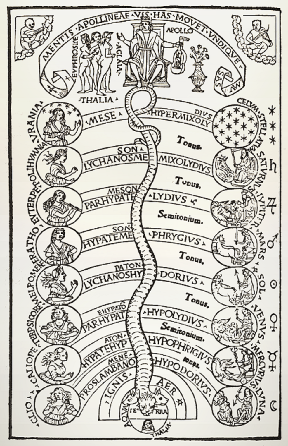 The Music of the Spheres, from Practica Musice by Franchinus Gaffurius, Florence, 1496 (click images to enlarge)