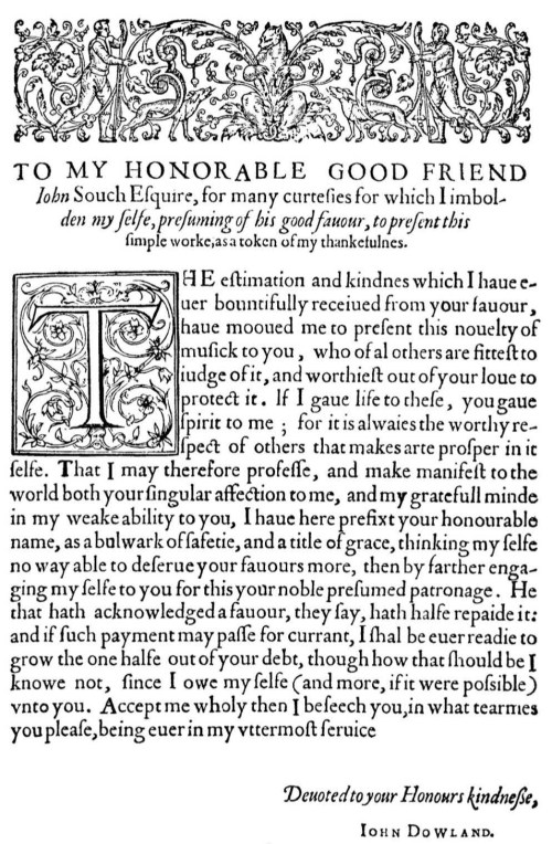 THE applause of them that iudge, is the incouragement of those that write: My first two books of aires speed so well that they haue produced a third, which they haue fetcht far from home, and brought euen through the most perilous seas, where hauing escapt so many sharpe rocks, I hope they shall not be wrackt on land by curious and biting censures. As in a hiue of bees al labour alike to lay up honny opposing them selues against none but fruitles drones; so in the house of learning and fame, all good indeuourers should strive to ad somewhat that is good, not malicing one an other, but altogether bandying against the idle and malicious ignorant. My labours for my part freely offer to euerie mans iudgement, presuming, that fauour once attayned, is more easily encreased then lost.