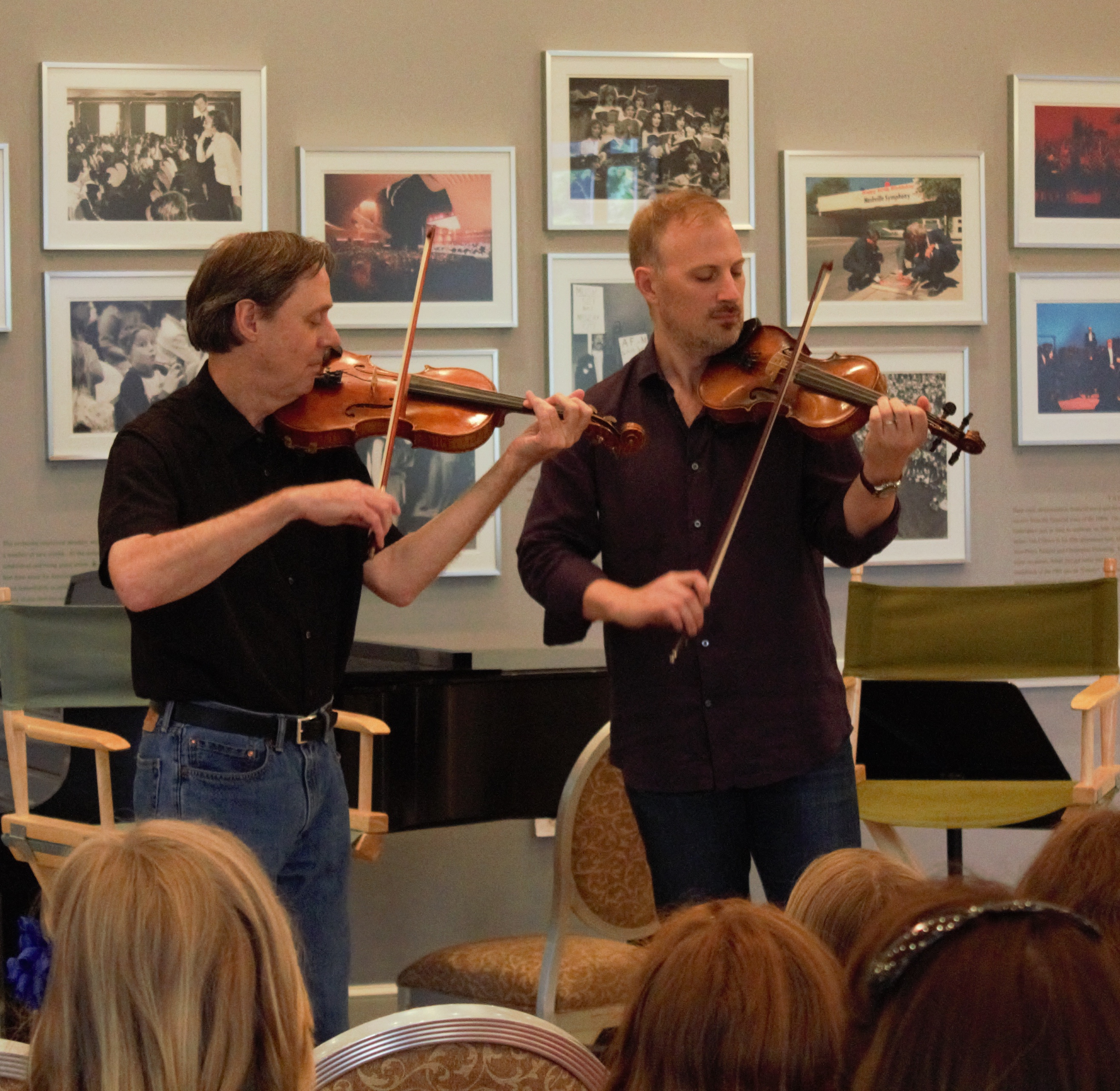 (l to r) David Coe and Matt Combs perform for a group of students attending Is It A Fiddle Or A Violin? at Schermerhorn Symphony Center